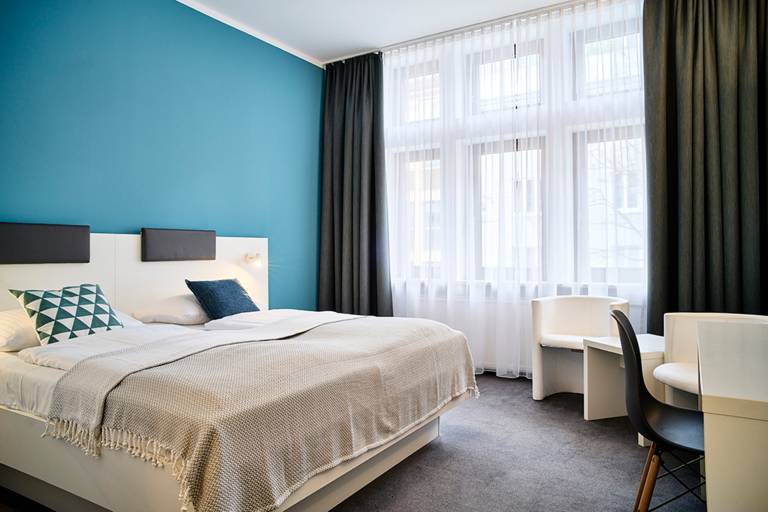 Our double rooms are mostly equipped with a double bed (2 separate mattresses 0.90mx2.00m) or 2 twin beds that can be pushed apart or pushed together. Each room has a desk and chair, additional seating, telephone, radio, TV, noise protection window and luggage rack. The bathroom has either a rain shower or bathtub, toilet, hair dryer, as well as a hair and body shower gel from Alpin Spa. Free WiFi is available throughout the house.