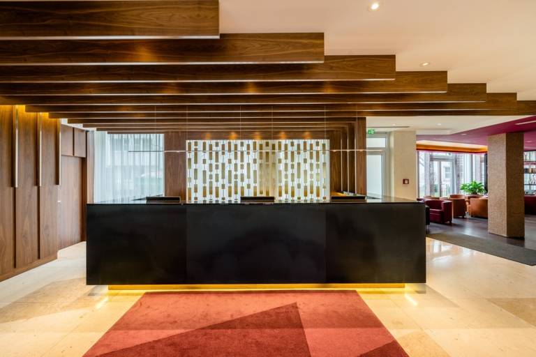 The double rooms of the Standard category with king-size bed and a size of 22 squaremetres are furnished comfortably, in a contemporary style with warm colours. The style of the Superior rooms is design oriented and clear cut, they are all facing the quiet courtyard/garden. They measure between 26 and 35 squaremetres. All 162 guest rooms are equipped with an individual adjustable air conditioning, writing desk, safe, minibar, flat screen television and telephone with voice mail. Additionally, the Superior rooms have wooden floors, a Nespresso machine, large king-size beds, rainshowers and high-quality amenities from ELEMIS SPA.