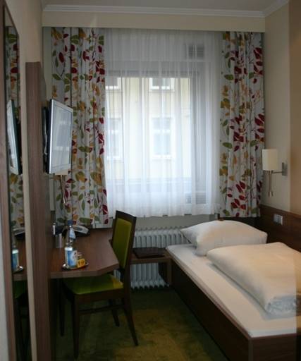 The single rooms are with single bed, shower, WC/TV/telephone, air condition, noisy stop windows and Internet connection.