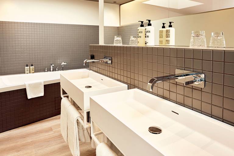 Our 35 m²-large suites provide everything you may need for a marvellous stay: Functional design, contemporary interior and a generous living space. The bathroom tub and the occasional glimpse of the mountains are two exciting extras of this light-flooded suite.