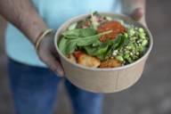 According to co-founder Thomas Kruse, there are no fewer than four million possible combinations for Aloha Poke alone. The gigantic number seems even more astonishing when you stand in front of the counter, where the ingredients are neatly presented in bowls. The idea behind Aloha Poke is that everyone can put together their own personalised bowl from the four basic pillars of rice, protein, raw vegetables and numerous toppings. Kruse emphasises, “That's the best thing about it.“