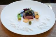 The Atelier also offers a vegetarian menu – which is rather unusual in Michelin star restaurants. Here, meat and fish are not simply substituted: Anton Gschwendtner and his team create an entirely separate menu. Moreover, no tuna, foie gras or endangered species are processed in the Atelier. Otherwise, Gschwendtner enjoys free rein.