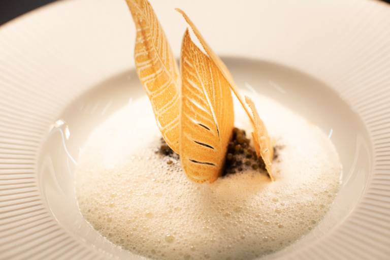 Gschwendtner's elegant cuisine has both Japanese and French influences. So, he sometimes serves dashi butter, then again beurre blanc. For him, a dish is only perfect when there’s nothing that can be left out. And that is also reflected in the philosophy of the Atelier: There are only a few pictures on the walls, the furnishings are reduced to the essentials. The food should be in the foreground, the dishes are served like works of art.