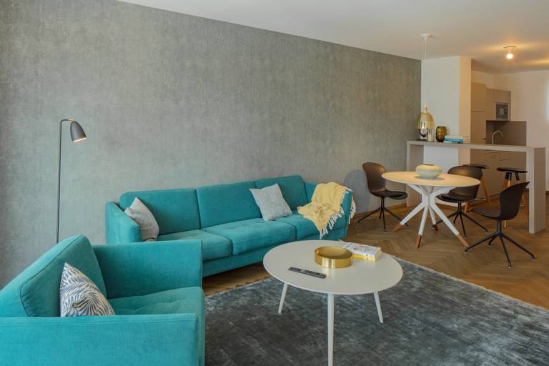 Exclusive Room from 55m² (2 Rooms) Brand new Apartments, comfortable, modern and lots of space to feel comfortable. Place for dinner and Couch Corner.