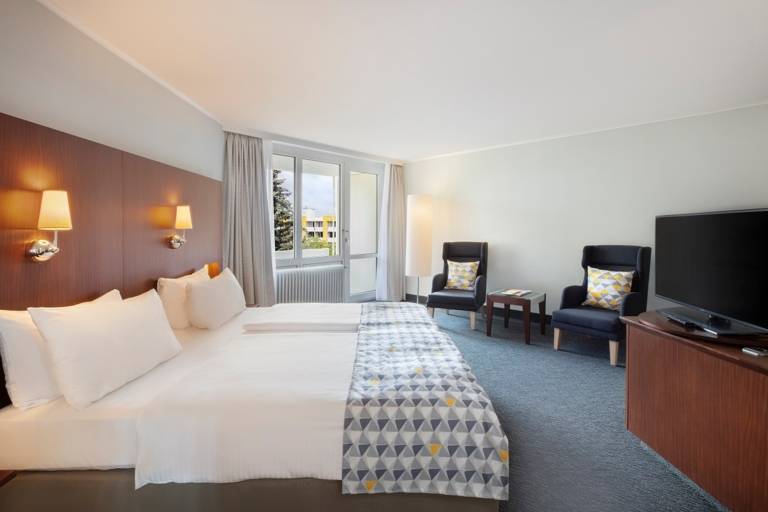 Welcome to the quiet Hotel Holiday Inn Munich-South with convenient underground connections to the city center. We have 320 renovated rooms with a modern design and many different room categories, so there will be the right one for your needs. All our rooms, from standard rooms to executive rooms, have a balcony or terrace.