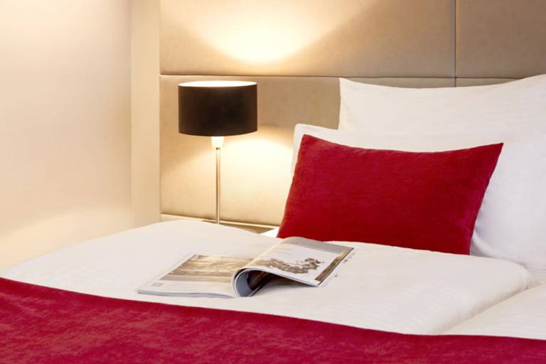 Deluxe Double Bed for single - use * Maximum Occupancy: 1 person * 269-280 square feet / 25-26 m² * Bed Type: double bed (each bed 1,00 x 2,10 m) * Majestic Plus orthopaedic LFK - inner spring mattres for a perfect sleeping comfort * Position: all rooms facing to the courtyard / according to availability with shower or with bath tub *