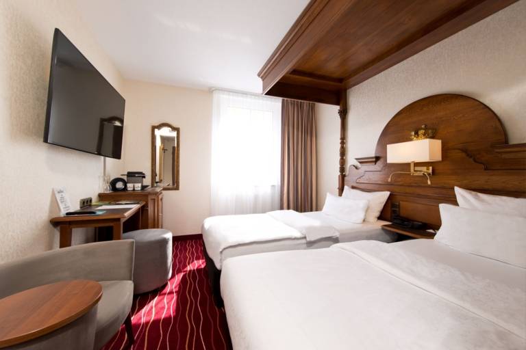 Welcome to our Club Double Room! Our Club Double Room offers the perfect balance of relaxation and modern comfort. Enjoy a restful night in absolute peace and quiet thanks to our soundproofing and orientation towards the inner courtyard. Stay connected during your stay with our high-speed WiFi. Treat yourself to a cup of coffee from our coffee machine and start the day fresh. We take care of your well-being with first-class toiletries and allergy-friendly bed linen.