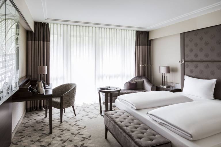 The 38 sqm Junior Suites at Pullman Hotel Munich combine a high level of comfort with timelessly elegant furnishing. Aside from a great sleep in the comfortable King Size or Twin Beds, you can enjoy a cup of coffee from the Nespresso Hot Beverage System on the private, furnished balcony, or a cool drink from the free minibar while surfing the Internet on complimentary Premium High Speed WiFi. Relaxation can be found in the modern Garden Spa, which you can access for free as a hotel guest.