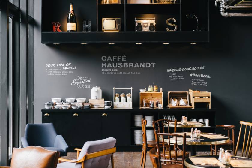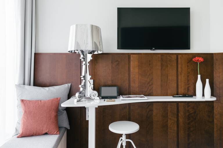 The new Ruby Lilly Hotel lies directly within the heart of the Munich city center, accommodating 174 modern rooms with high-quality furnishings. Located directly at Stiglmaierplatz, important hotspots are within walking distance, such as the historically significant Königsplatz, Munich main station, as well as Munich´s nightlife surrounding Maximilianplatz. Original design classics and great vintage pieces from the 70´s ironically reflect Munich´s glitterati lifestyle. The multifaceted interior of the Ruby Lilly Bar makes for a cosy atmosphere: a harmonic color composition, comfy armchairs, and large family tables create a relaxed, urban flair with a touch of nostalgia. Italian snacks and aperitivi, hand-selected wines, and ingenious drinks are served around the clock. Not everything, but all the right things – every morning the organic breakfast buffet prepares you for your day with high-quality baked goods and powerfood müsli. In each room, the interior uses the space efficiently, combining cherry wood-paneled walls, real wood oak floor boards, and panoramic windows, partly with a cosy alcove upholstered with grey wool. A dimmable light provides the appropriate atmosphere. In the Galley on every floor guests are offered free hot beverages as well as snacks and are able to buy all kinds of necessities in the Vending Machines.