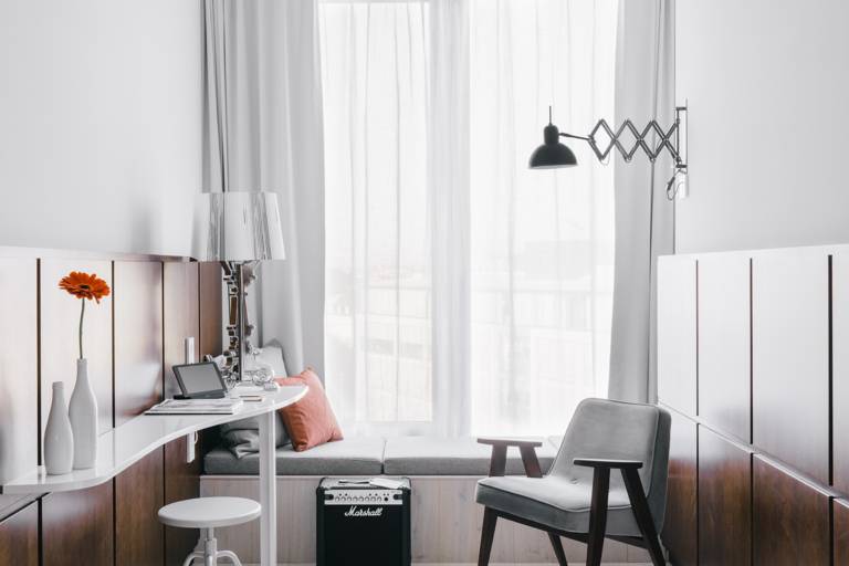 Ein LOVELY City Getaway (18-19m²) mit mehr Platz. Ideal für einen längeren Aufenthalt oder für zwei Personen. Kuschle dich in das luxuriöse Bett (160cm) und entspanne im zusätzlichen Sessel. Die Zimmer haben teilweise eine Fenstersitznische. Perfekt, wenn man ein bisschen mehr Platz braucht.
