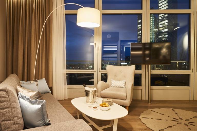 If you aim high and want to stay close to the clouds our Executive Suite is the right choice for your stay. Situated on the upper floor of the building, it offers about 60 sqm spaciousness above the rooftops of Schwabing. . 60 sqm . upper floor . two-room Suite with separate living room with lounge area . one King-size bed . air conditioning . floor to ceiling windows . anti-allergic real wood floors . bathroom with shower or tub . minibar . coffee machine and water heater . free WiFi . smart TV . safe