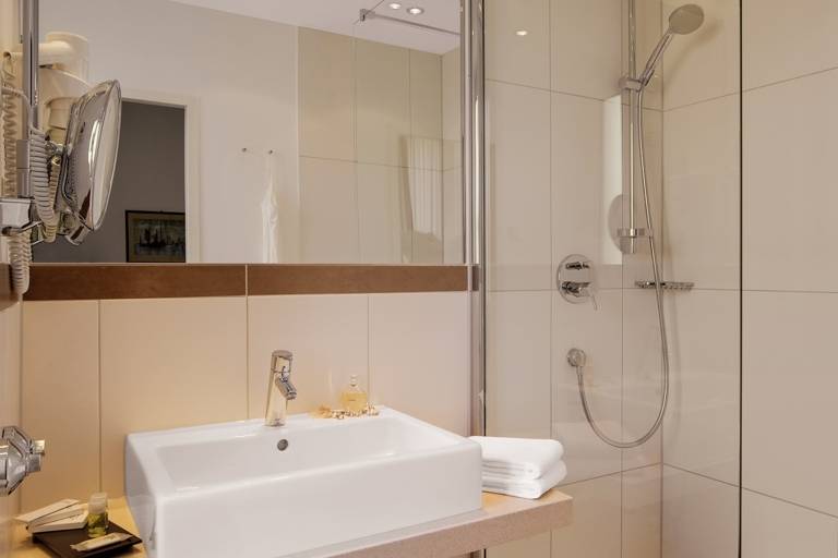 High-grade wood and top-quality materials are the signature features of our two Junior Suites. They face the quiet inner courtyard and will contribute to make your stay a perfect feel-good experience with the generously laid out daylight bathroom with wellness rain shower and bath tub as well as an iPod and iPhone-compatible sound system and a large cabinet with Nespresso machine and automatic tea maker.