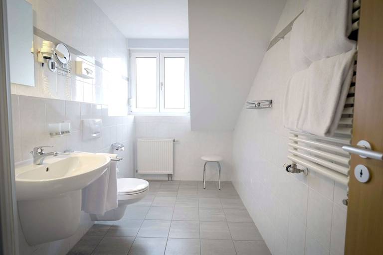 Warm, bright colors stand for the single rooms in the Arcus Hotel with Wi-Fi or high-speed Internet access, here you can retire without losing contact with the outside world. The rooms with about 18sqm are modernly furnished with natural wood king-size beds, anti-allergic bedding, satellite TV, clock radio, full minibar, exterior blinds, French balcony or terrace and with shower / WC.