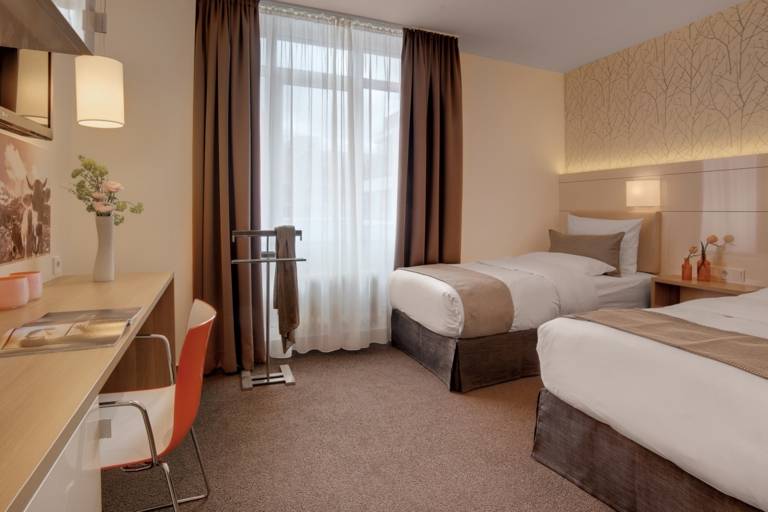Perfect for friends and business partners traveling together our Comfort Twin guest rooms have all the on-the-road essentials you need. Located facing our green courtyards featuring contemporary bathrooms with walk in shower, a spacious work desk, a 32 inch wall-mounted television, a mini-refrigerator and a coffee/ tea maker. Catch the morning news over a cup of coffee, spend a few extra minutes in the shower, then head downstairs. Munich is at your doorstep.