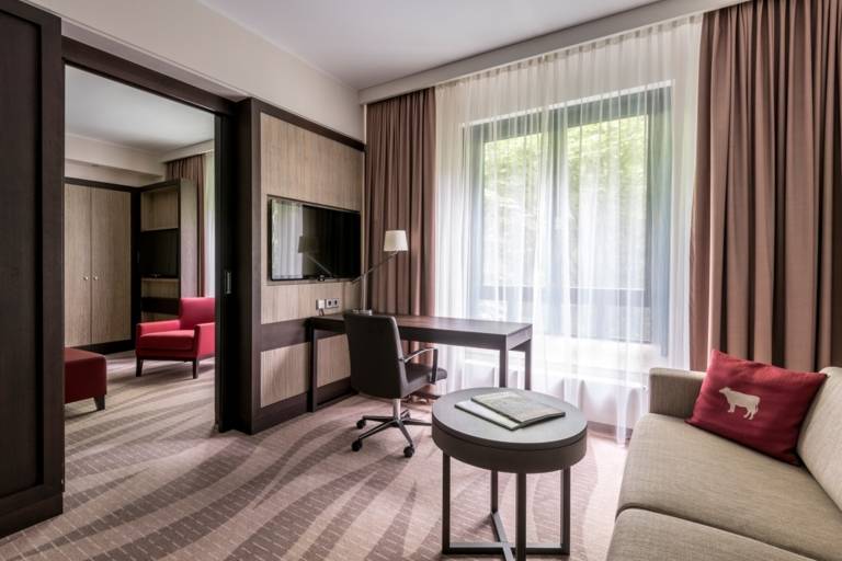 For travelers who apreciate mobility, the Munich Airport Marriott Hotel is the ideal place. Located in the heart of the city of Freising, you can reach the airport in just 10 minutes by car. The way to Munich is not far either. By train, you can be in the city in just 20 minutes and have the opportunity to enjoy the numerous sights and shopping opportunities. The 252 guest rooms of our hotel near Munich are completely renovated and equipped with high-quality furnishings. The fresh ambience of our breakfast restaurant, the Molkerei, will help you get a good start to the day in the morning. The Stub'n serves traditional Bavarian cuisine in a contemporary atmosphere, and in the Loden Bar & Lounge you can enjoy local dishes and beer specialties while watching a live sports event broadcast. After a long day, unwind in our newly renovated spa and fitness area.