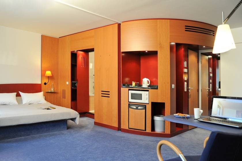 Treat yourself to a relaxing stay at the 3-star Novotel Suites München Parkstadt Schwabing hotel. Our spacious suites measuring 323 sq. ft (30m²) with microwave, kettle and swivel flat screen TV can accommodate up to four people. The balanced buffet breakfast is served daily from 6am to 11am. You can reach the city center and all its attractions by tram and U-Bahn in approx. 15 minutes. The English Garden is just a short walk.