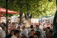 Ceux qui font leur pause déjeuner, les flâneurs après le travail, les Munichois de longue date et les visiteurs qui viennent de loin ou de près se donnent rendez-vous au Biergarten du Viktualienmarkt.