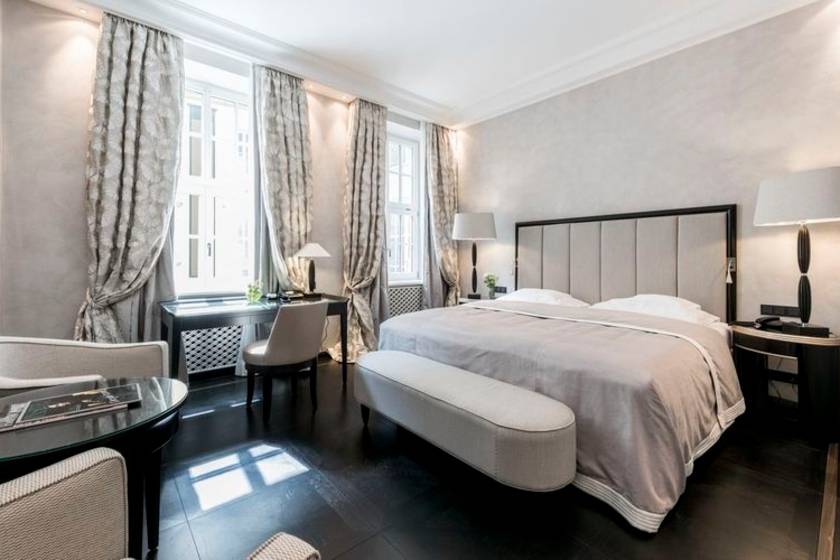 RoomequipmentOur superior double rooms are individually designed and boast the full range of amenities. The rooms cover about 35 sqm and feature a double- or twin-bed, a desk and a comfortable seating area. Mostly with walk-in closets, marble bathrooms with double washbasin, partially with bathtub and separate shower. Partially with connecting doors. All rooms come with a flat-screen TV with over 400 international channels and Pay TV as well as a bluetooth-speaker. Available styles: Classic, Cosmopolitan RnB, Colonial, Laura Ashley, Count Pilati.