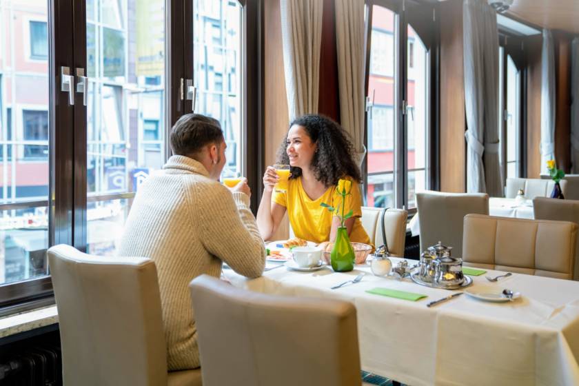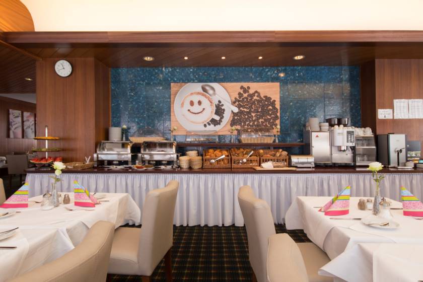 Start a new adventure in the city with a great breakfast buffet in the spacious breakfast room on weekdays from 6:00 - 10:00 and on weekends and holidays from 06:00 - 10:30. When you return from your city trip, you can enjoy delicious Italian food in the Ristorante Ca´D´Oro directly located in the building. A free water dispenser with drinking water fresh from the Alps awaits you at the reception. The hotel is especially popular with solo travelers and couples.