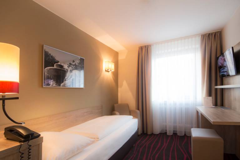 Bright and color-coordinated rooms with a chic equipment. Our Standard Class rooms await you with a fresh coat of paint and optimum room layout. For your convenience there is a desk with a free of charge WiFi internet-access as well as a modern flat-screen TV and of course a minibar fridge. Single City Standard (front- / side street) / Single bed (90 x 200 cm) / 13 m² - 15 m² / not air conditioned / 100% non-smoker / iPad room safe