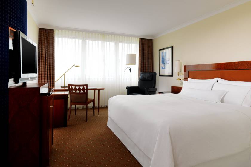 All 627 rooms and suites of this wellness hotel feature the Westin customary Heavenly beds for a blissful night's sleep. Experience the taste of Bavarian tradition in one of our Bavarian guestrooms. Meanwhile, the kitchen and service teams of the Café & Grapperia and Paulaner's Wirtshaus with its beer garden provide refreshments. In the evening, more than 160 different cocktails, prepared according to original recipes or signature creations are served at Ducktail's Bar. Those seeking relaxation are sure to strike gold in the modern, 1,500 m² ISARspa where indoor pool, sauna, steam bath and beauty treatments await you. With the WestinWORKOUT, the spa has its own separately accessible 24-hour gym. The two-floor Westin Club is a highlight of the hotel, commanding a wonderful view over Munich from the 23rd floor.