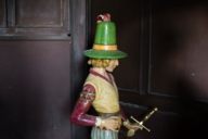 Quello che sembra così introverso è un portabandiera dell’entourage del duca bavarese Guglielmo V, riconoscibile dai rombi bianchi e blu e dal leone bavarese sulla bandiera. Con la sua altezza di 1,40 metri, la figura in rame raggiunge il nostro fotografo Frank solo fino al petto. Ma non possiamo dirlo con certezza, perché Frank, per poter scattare le foto, deve gattonare per raggiungere le figure. Dove si riflette la luce, le figure escono su Marienplatz, sul palcoscenico del carillon. Fuori, Guglielmo V e sua moglie Renata della Lorena, aspettano già l’arrivo dei cortigiani e l’inizio del torneo cavalleresco.