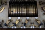 La sala di distribuzione al quinto piano della torre occupa uno spazio sorprendentemente piccolo. All’esterno assomiglia a una vetrina del salotto della nonna. Sotto vetro ci sono leve di interruttori tramite le quali viene azionato il carillon. Da sinistra a destra nella foto potete vedere la leva per il torneo dei cavalieri, per la musica di accompagnamento durante il giorno e per la musica della buona notte per il Münchner Kindl. Anche il “gallo” che canta alla fine del carillon, e l’”Hanswurst” (Gian Salsiccia), membro dell’ensemble dei bottai, sono collegati a mano. Al termine di ogni spettacolo, l’applauso della folla di Marienplatz è certo.  È’ lo stesso che un pilota riceve dopo un atterraggio perfetto.