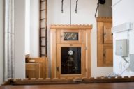 La musica viene riprodotta all’ottavo piano, all’incirca al livello della piattaforma panoramica, dove i visitatori non hanno accesso. In altre parole, è qui che si creano le condizioni affinché le campane nel sottotetto possano accompagnare musicalmente le scene dello spettacolo.  Se l’interruttore corrispondente viene azionato tre piani più’ in basso presso l’interruttore principale, un cilindro rosso porpora ricoperto di piccoli perni metallici inizia a ruotare. Tramite il posizionamento dei perni, vengono programmate diverse sinfonie a più voci. Il principio è lo stesso come per i piccoli organi in miniatura, che vengono azionati a mano con una manovella. Ogni perno attiva un segnale acustico tramite un relè di commutazione.