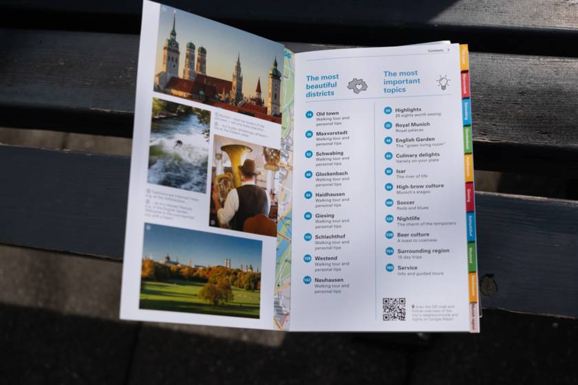 Per aiutarvi a diventare rapidamente un insider, abbiamo riassunto gli argomenti più importanti in brevi saggi che seguono ogni capitolo. Questi trattano della Monaco reale, del Giardino Inglese, delle specialità culinarie e altro ancora. Nelle ultime pagine troverete i servizi offerti dal Turismo di Monaco, tra cui una panoramica delle visite guidate prenotabili, una mappa del centro città e una mappa dei trasporti locali nelle copertine della guida.
